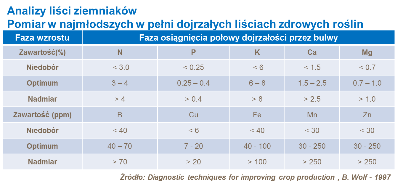 Analiza tkanek roślinnych (niezależnie od tego czy ogonka liściowego czy całego liścia) dokonywana podczas sezonu wegetacyjnego stanowi idealny obraz aktualnego stanu odżywienia roślin i pozwala zdiagnozować niedobory składników, w szczególności mikroelementów.