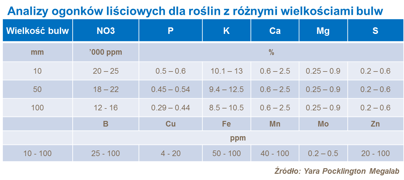 W połowie sezonu wegetacyjnego pobiera się 30-40 ogonków liściowych z pierwszych, najmłodszych w pełni rozwiniętych liści. Ogonki powinny być wymieszane ze sobą i powinny pochodzić z różnych części pola.