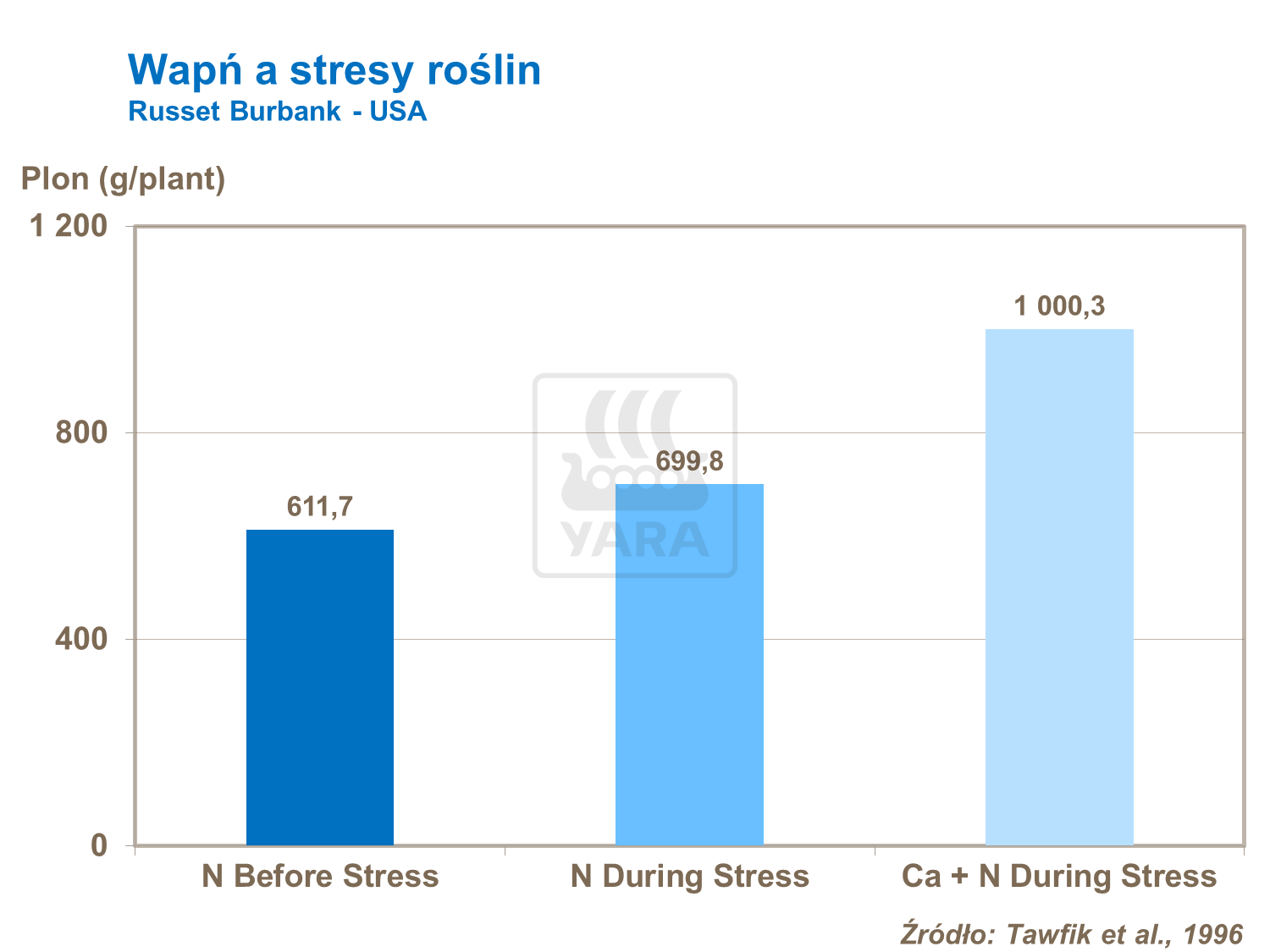 Ponadto wapń pomaga roślinie przeciwdziałać stresom poprzez wpływ na sygnalizację w łańcuchu reakcji podczas wystąpienia stresu. Ma również podstawowe znaczenie w regulacji aktywnego transportu potasu niezbędnego do otwarcia aparatów szparkowych. Co jest bardzo potrzebne w redukowaniu stresów związanych z letnimi upałami, pozwalając na zachowanie turgoru w roślinie a także zmniejsza zniszczenia liści spowodowane oparzeniami słonecznymi. W takich sytuacjach wapń może powodować wzrost plonu o 30%.